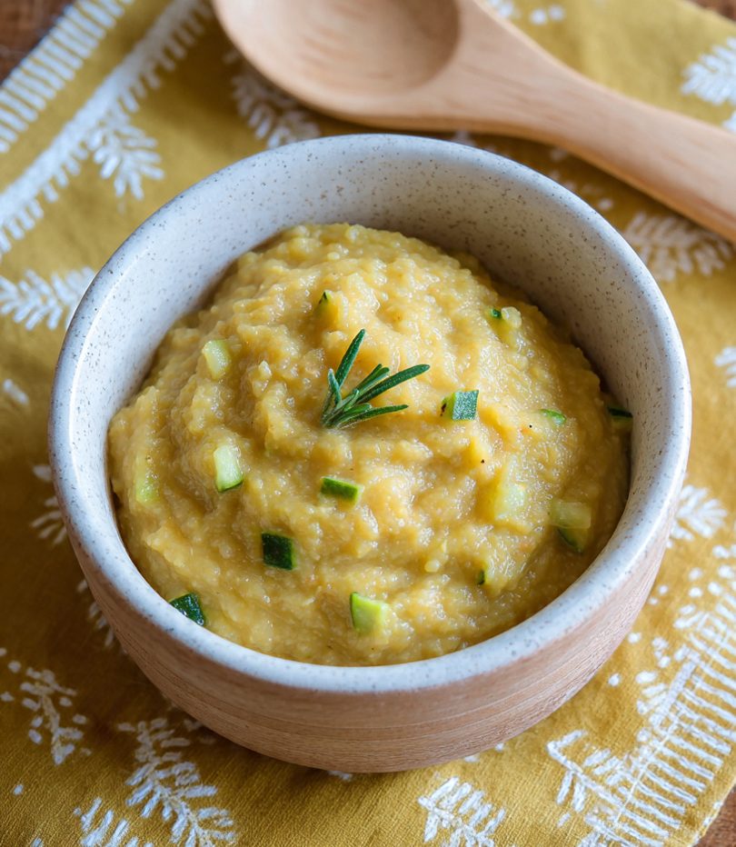 Puré de lentejas rojas, calabacín y patata para bebés de 6 meses