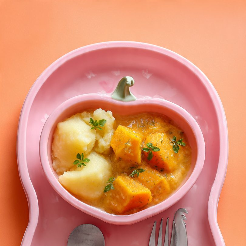 Puré de calabaza, pollo y patata para bebés de 6 meses