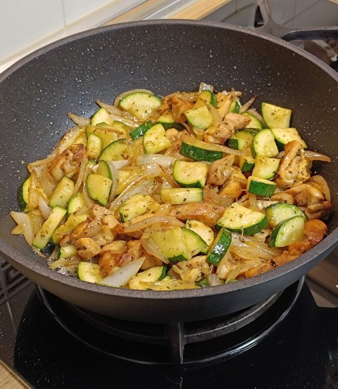 Un plato que huele a cocina luminosa: pollo dorado, limón chispeante y calabacín que absorbe todo ese jugo vibrante.