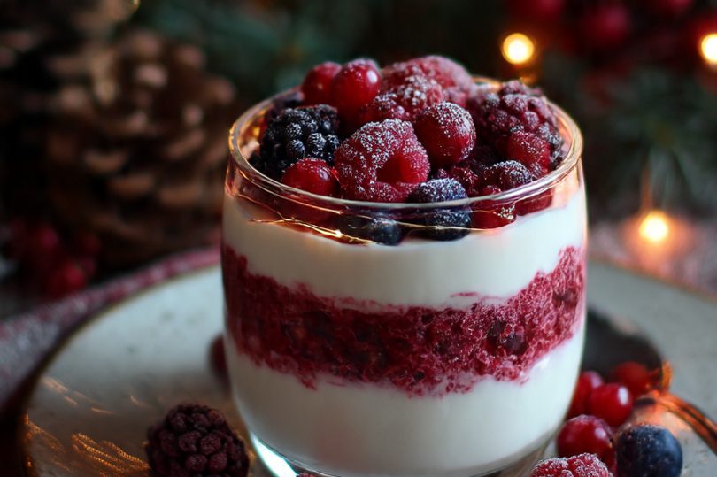 Mousse navideño light de yogur y frutos rojos – Postre bajo en calorías ideal para perder peso