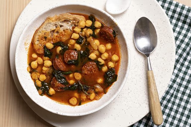 Aprende a preparar garbanzos con chorizo tradicionales, un guiso español lleno de sabor y autenticidad