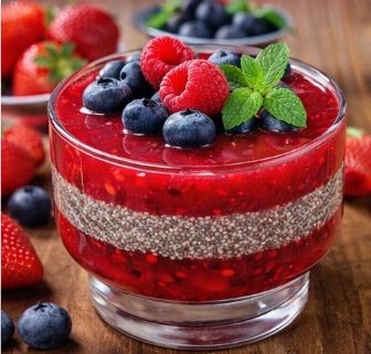 Los frutos rojos son potentes antioxidantes y la chía aporta omega 3, haciendo de esta gelatina antiinflamatoria un postre saludable, ligero y digestivo.